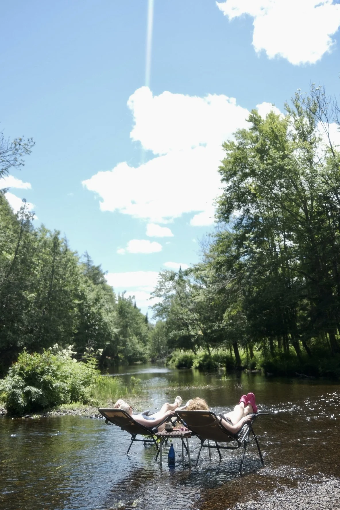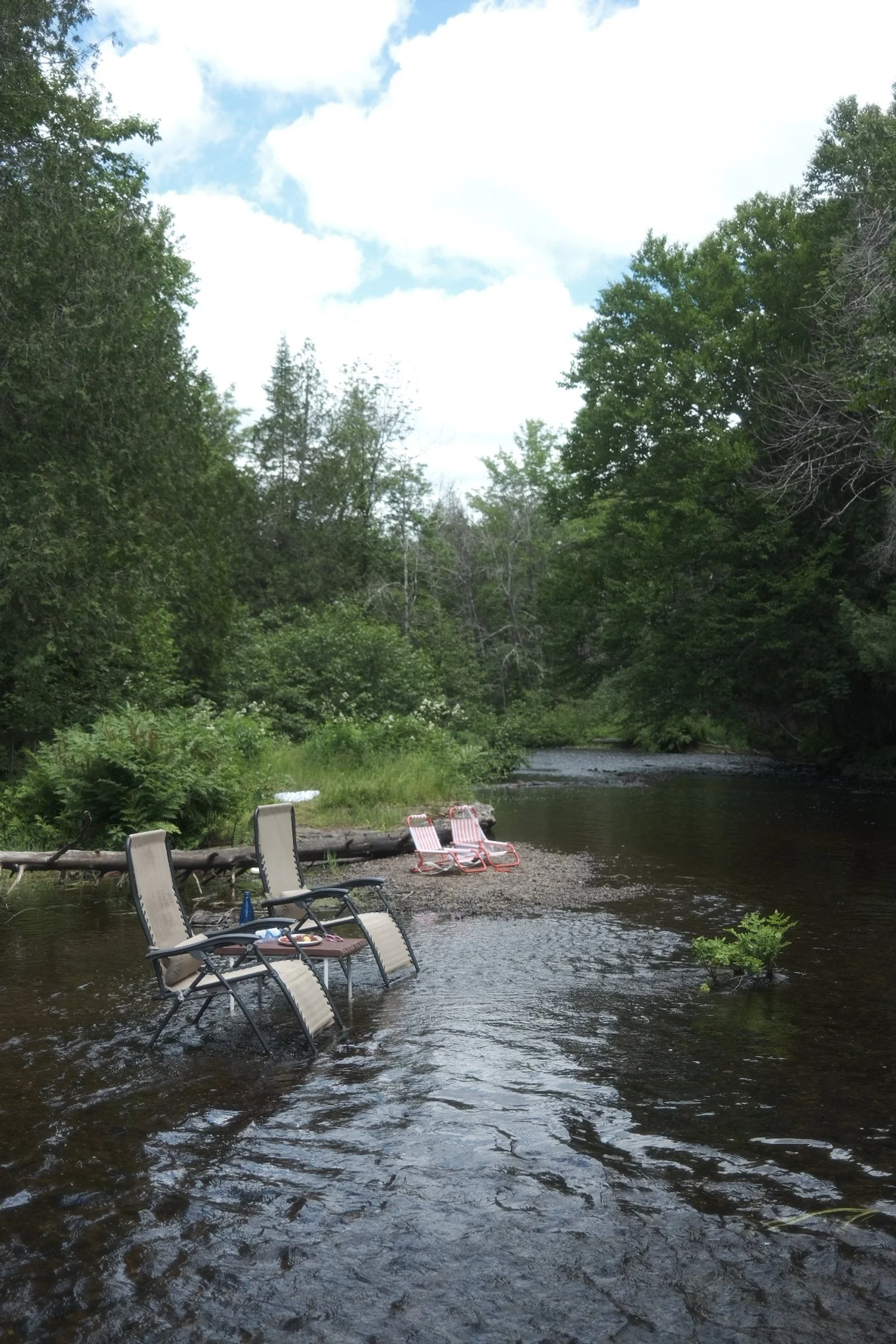 Go for a dip in a 5 ft crystal clear natural pool in front of your own private island perfect for taking in the sun (and maybe a cocktail or 2). Float down the river a bit and gaze at the trees and if you're lucky you might see a great blue heron who calls our private island his personal Pied à Terre.